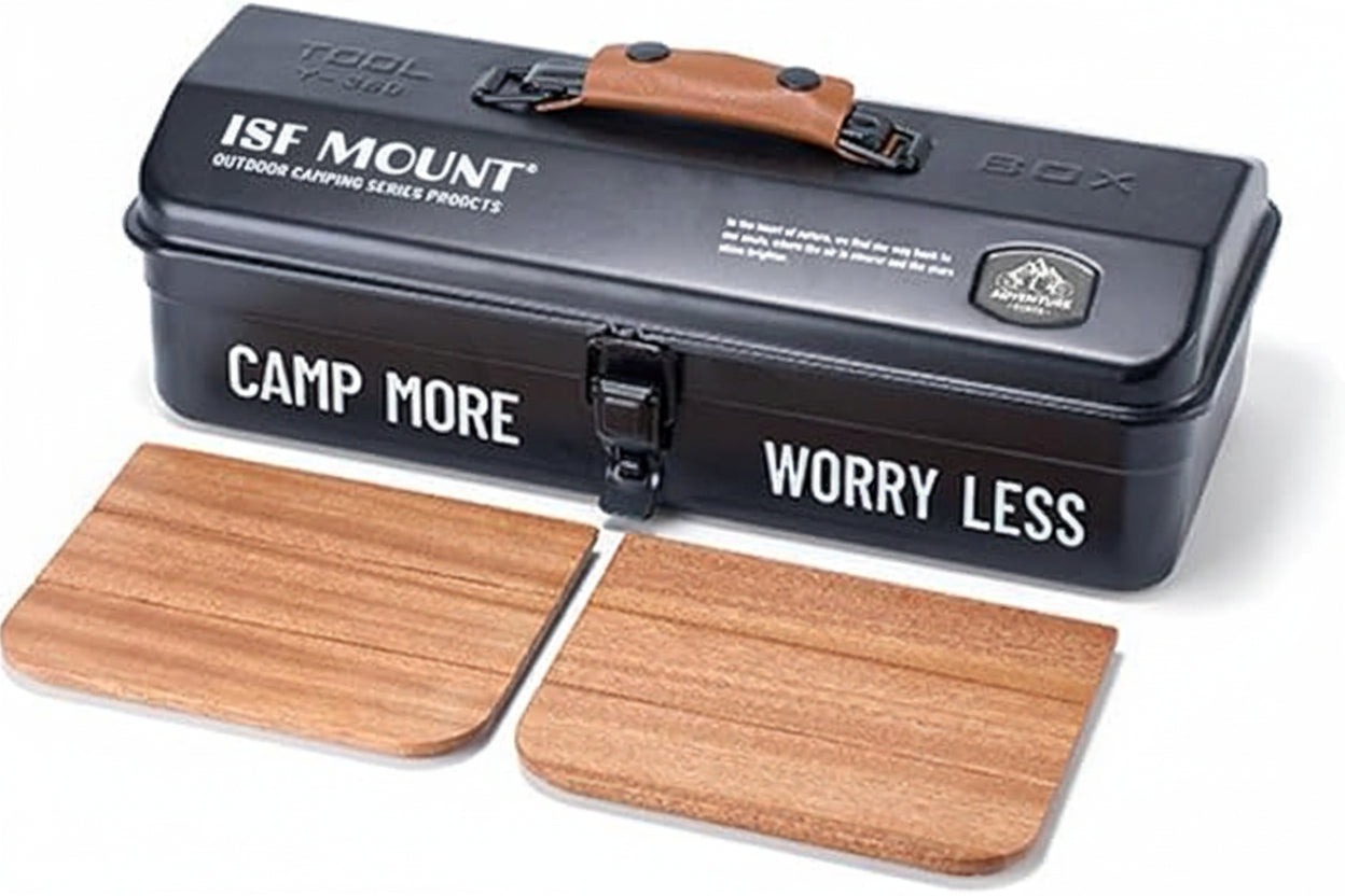 This portable metal retro camping handheld storage box is a versatile and stylish accessory for coffee enthusiasts and outdoor adventurers alike. Measuring 14 inches (35.6 cm) in size, it's the perfect companion for travel, office, or camping trips. Designed to hold your coffee tools and supplies, it doubles as an amazing portable coffee table once opened, thanks to its built-in solid wood laminate surface. The metal retro design adds a touch of vintage charm, making it an ideal gift for hand drip coffee lovers and camping enthusiasts. Whether you're brewing a fresh cup on the trail or enjoying a cozy coffee break at work, this handy storage box ensures your coffee essentials are always within reach. Its compact size and durable construction make it a practical and stylish addition to your coffee and outdoor gear it has stove Coffee grinder mokapot energy bean tube coffee mug