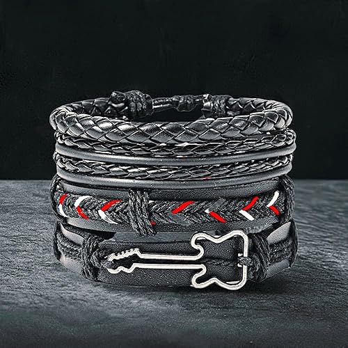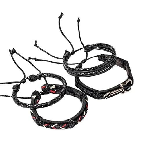 THE MEN THING Lather Bracelet for Men - 4Pcs Genuine Braided