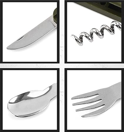 - Variety of functions: the foldable cutlery set has a 5-in-1 design, spoon, fork, knife, wine opener, beer opener, which integrates different functions to meet your different needs.
