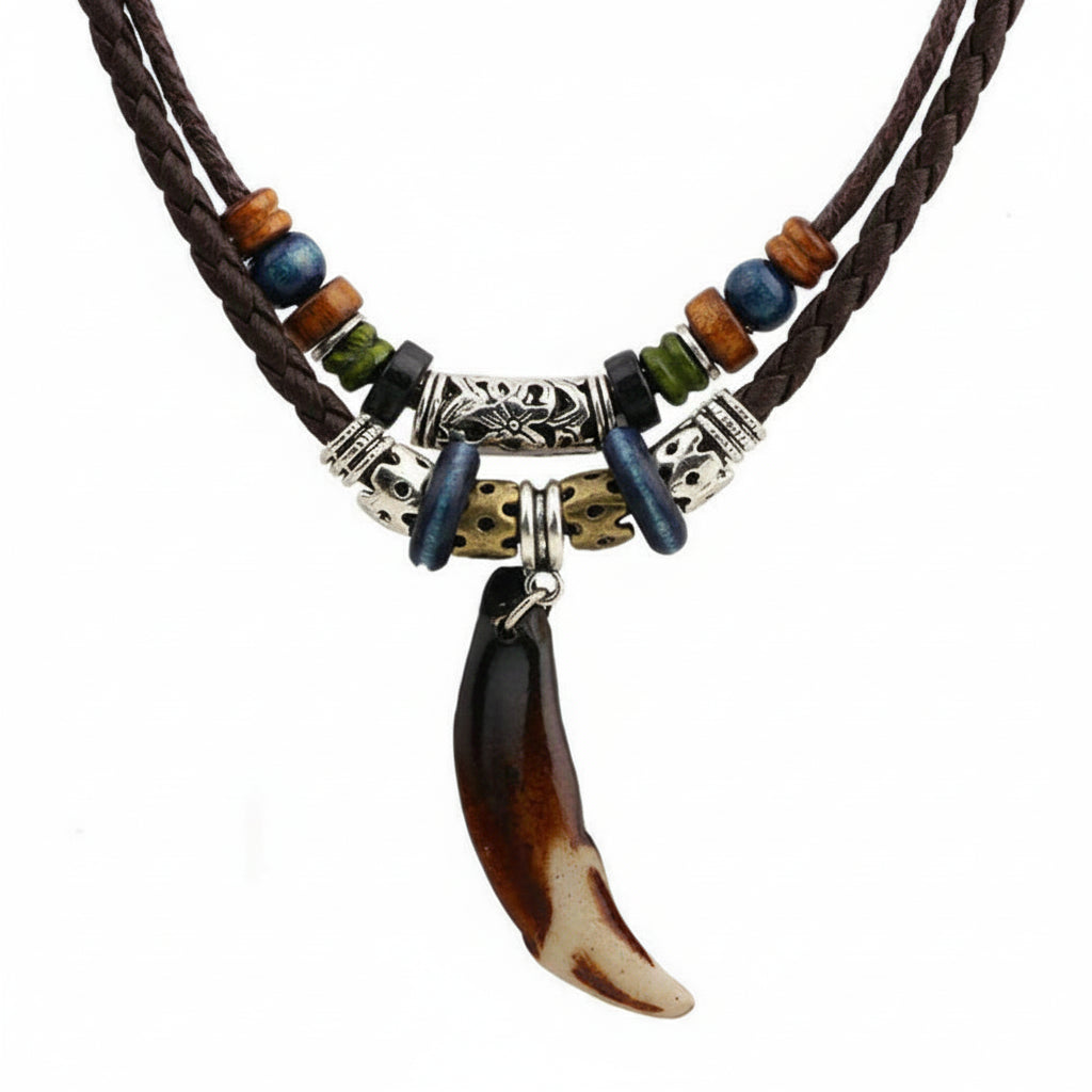 BOHEMIAN WOLF TOOTH - Wolf Tooth Pendant with Beaded Multilayer Adjustable Rope Necklace for Men an Boys
